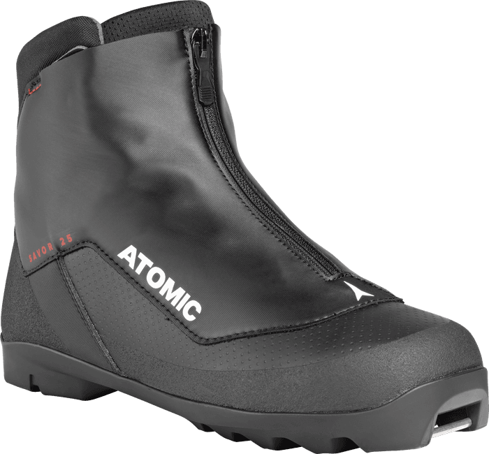 Si esquiar significa desconectar y disfrutar del aire fresco, la Atomic Savor 25 es ideal. Ofrece dos características esenciales para disfrutar de la pista: un soporte firme gracias al contrafuerte integrado en el talón y una comodidad excepcional durante todo el día gracias a su cómoda horma de travesía. Además, es una bota cálida con una cubierta frontal repelente al agua que mantiene los pies secos independientemente del clima, y ​​la cremallera central facilita enormemente su colocación. Por último, la suela Prolink proporciona una sensación excepcional en la nieve y es compatible con todas las fijaciones de 2 raíles, incluyendo NNN® y Turnamic®.