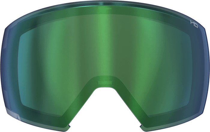 La lente Atomic Green HD con base morada y espejo verde multicapa es ideal para condiciones de sol a ligeramente nublado. Los microcristales HD de la lente realzan la luz azul y roja para una mayor percepción de profundidad y visibilidad.